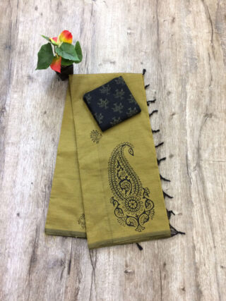 southcottonmix block printed saree with self and contrast blouse PCDB034